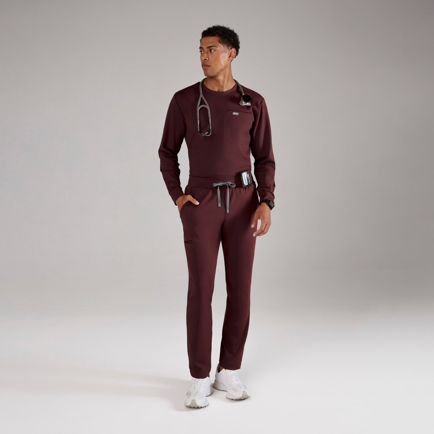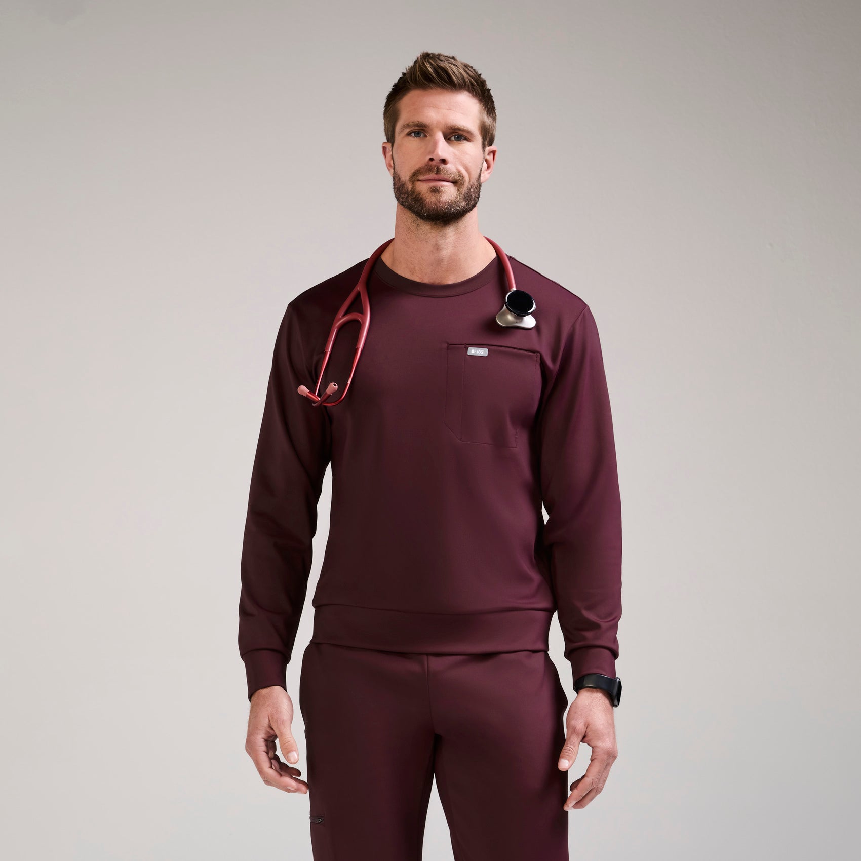 FIGS designs 100% awesome burgundy scrubs that help you look, feel and perform at your best every single shift. Available 24/7 in that perfect shade of maroon, our burgundy scrub tops, burgundy scrub bottoms and burgundy jogger scrubs have all the functionality and comfort you need to keep up with your busy day. Find all of your mens burgundy scrubs right this way.