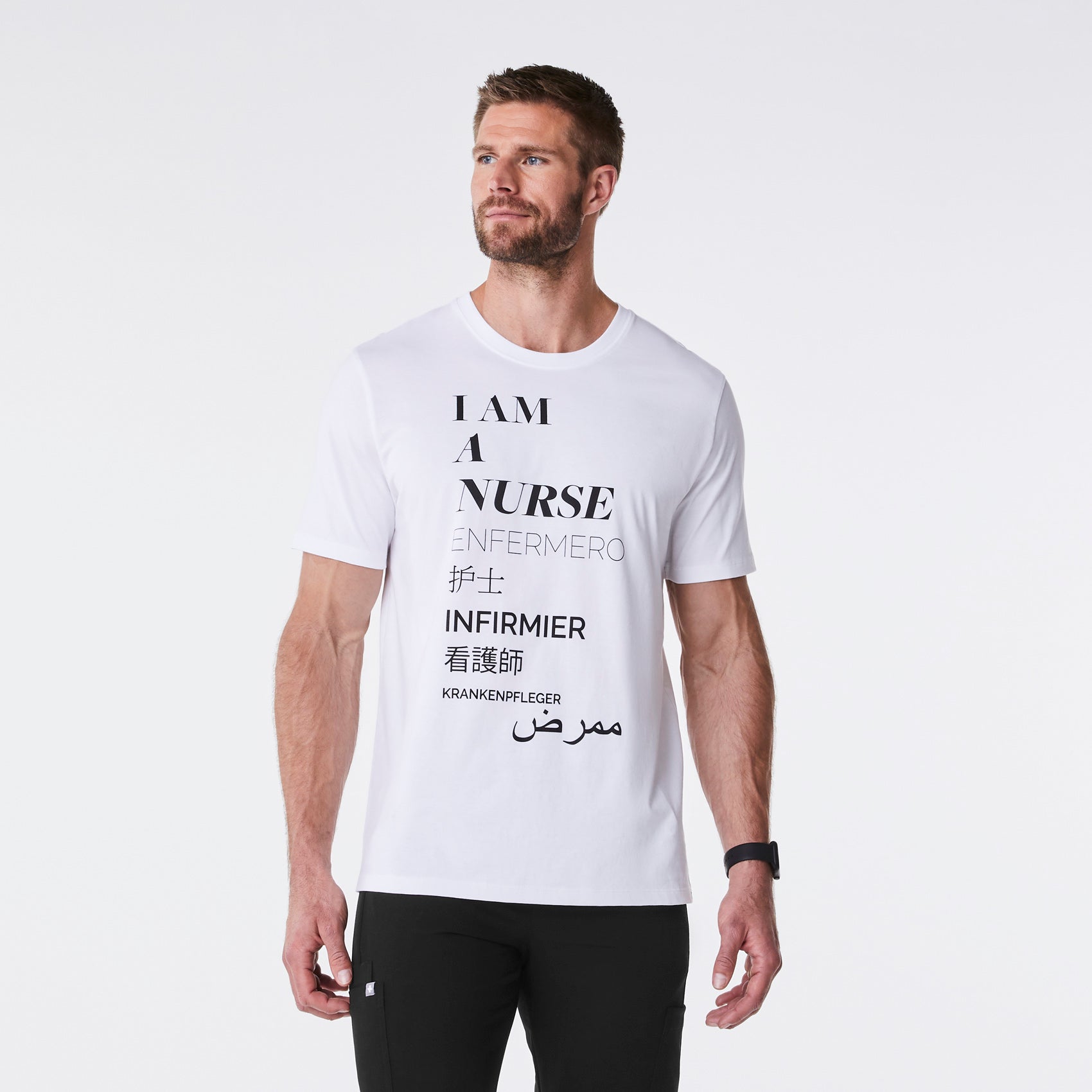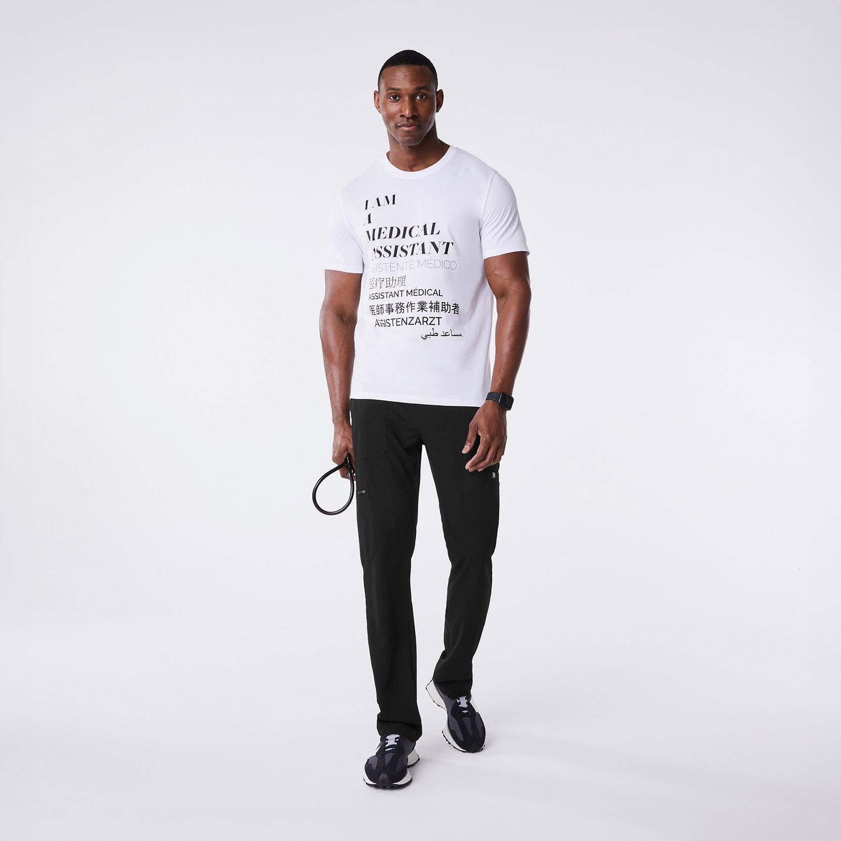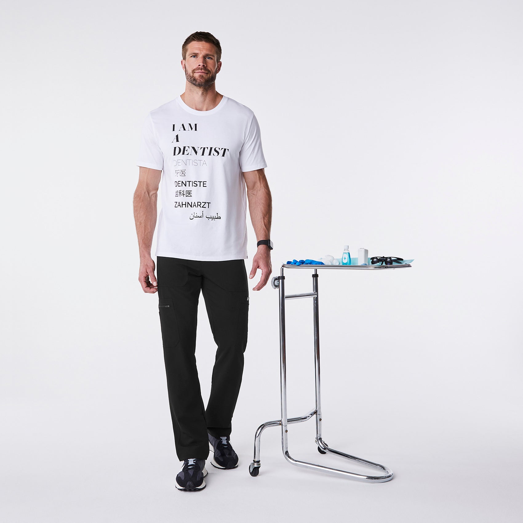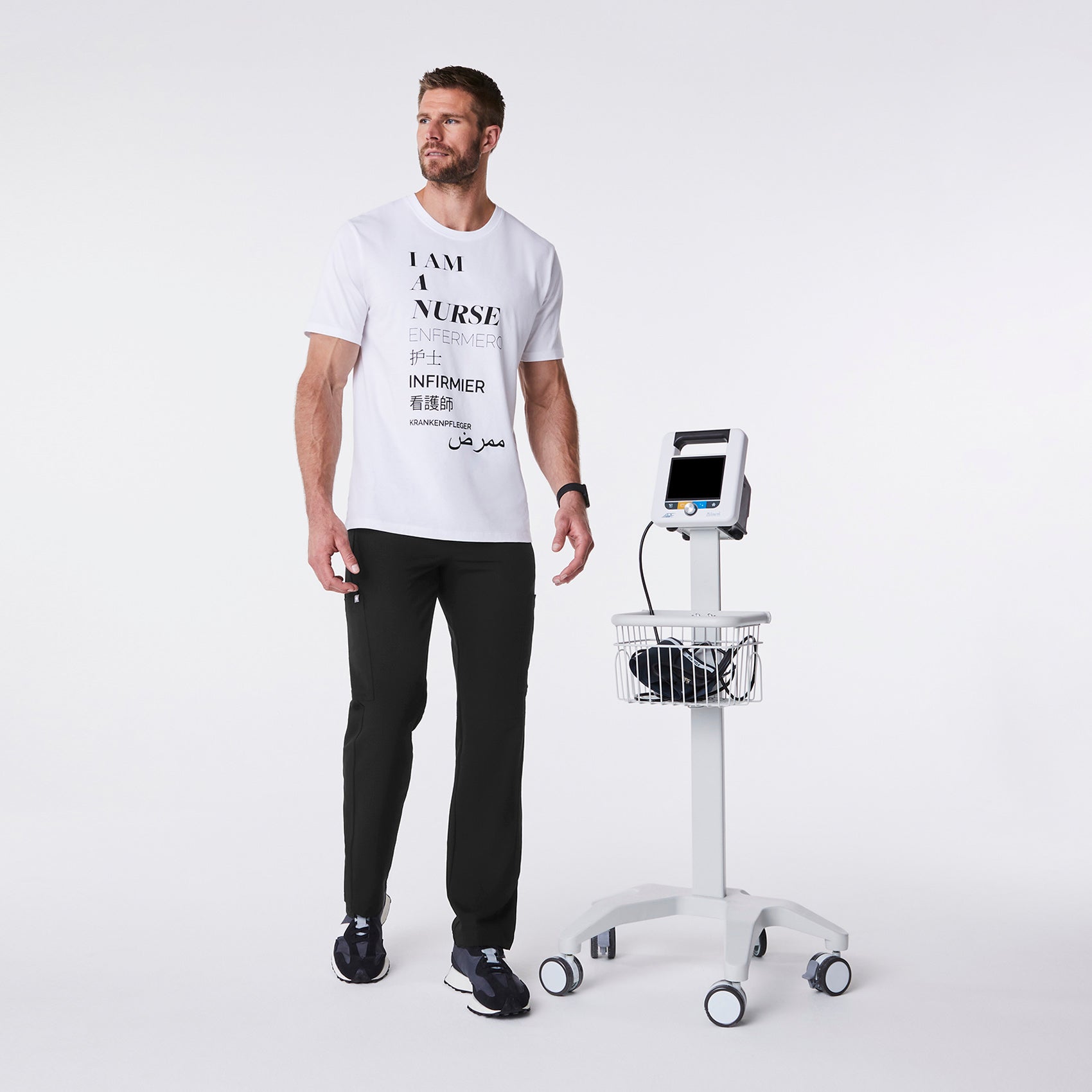 We designed FIGS underscrubs to be versatile, so you can wear them as scrub undershirts or on their own, paired with our men’s scrub pants. That’s because they don’t look like a typical men's undershirt—they have style. We offer a variety of colours to choose from, including the basics like white and black. We also offer FIGS graphic underscrubs. These are some of our most popular pieces. They are a fun way to show off some personality on the job.