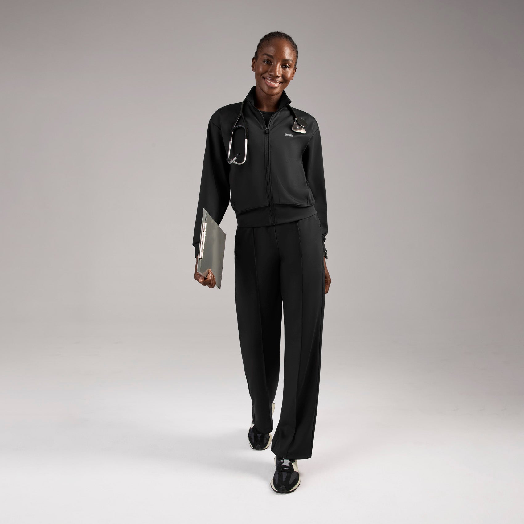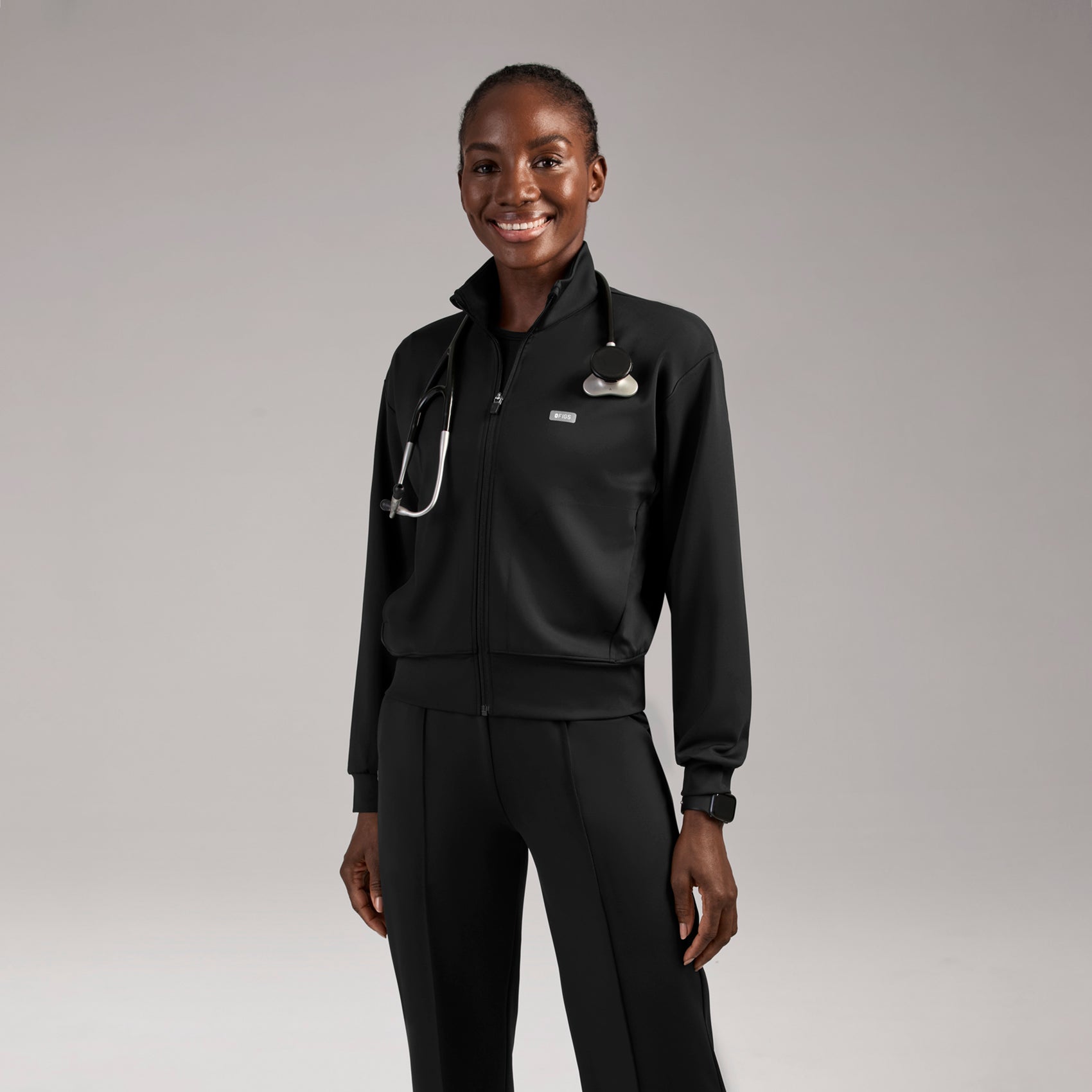 FIGS makes a variety of outerwear, including scrub jackets for women designed to bring the heat without weighing you down. Our women’s scrub vests offer the perfect level of cosiness and make layering with our women’s scrub tops a breeze. For colder days, or staying warm in a chilly ward, our warm-up style scrub jackets feature mesh lining, pockets and stylish silhouettes. Pair any of our fleece, knit and puffer options with women’s black scrub trousers for a total winter look. Find a complete cold-weather outfit in our women’s kits.